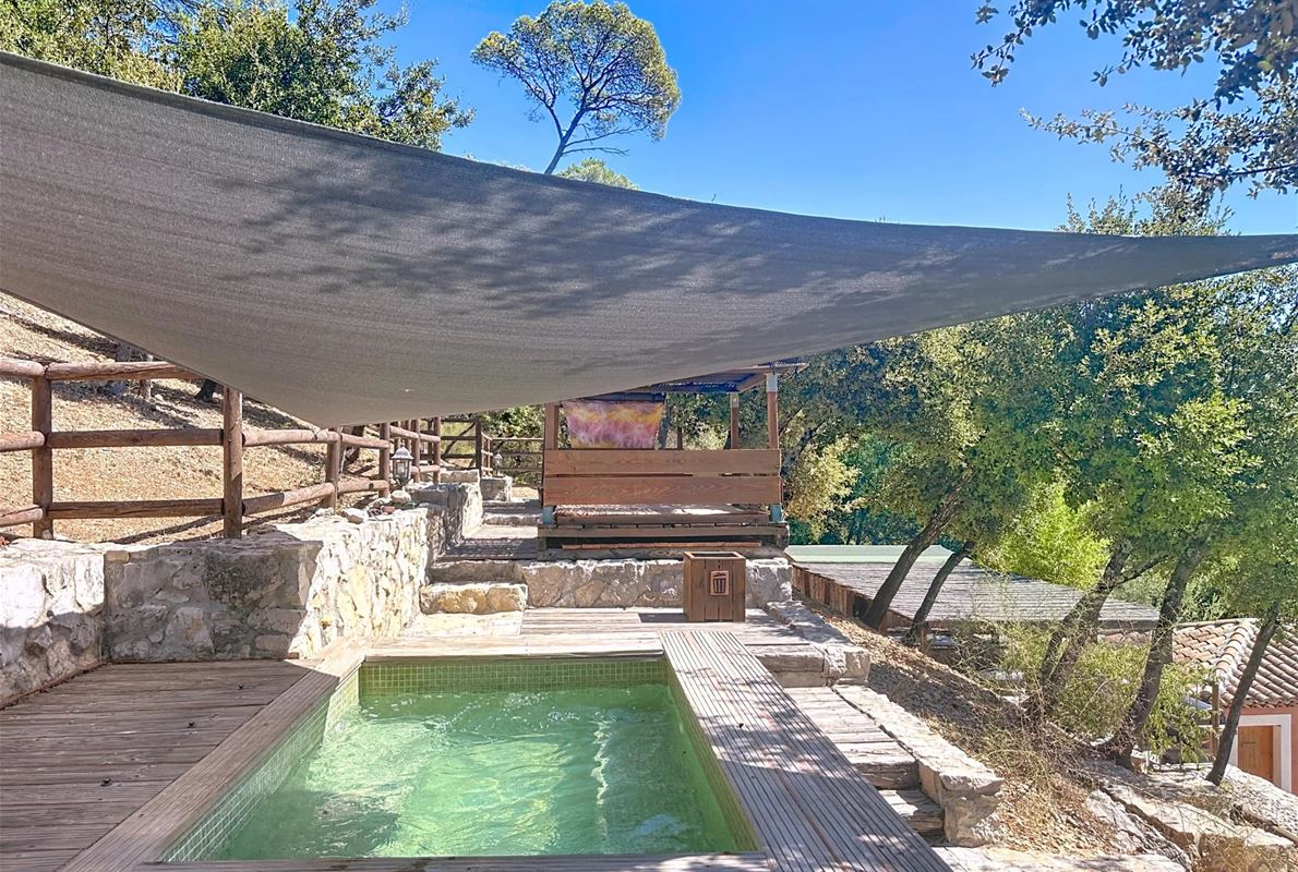Just 5 km from thevillage of Lorgues. The property features an open kitchen and a bright living room that opens onto a large 70 m² terrace with stunning panoramic views. There are two comfortable bedrooms, each with its own private bathroom. In addition, there are four separate rooms with private bathrooms and private entrances, as well as two independent studios — perfect for quietly hosting family, friends, or other guests. A heated swimming pool (10 x 5 m) with sun terrace, pool house, and semi-professional outdoor kitchen Two jacuzzis, a sauna, and several relaxing seating areas scattered throughout the grounds A cozy room for relaxation or exercise Private access to the river with a pontoon and canoes