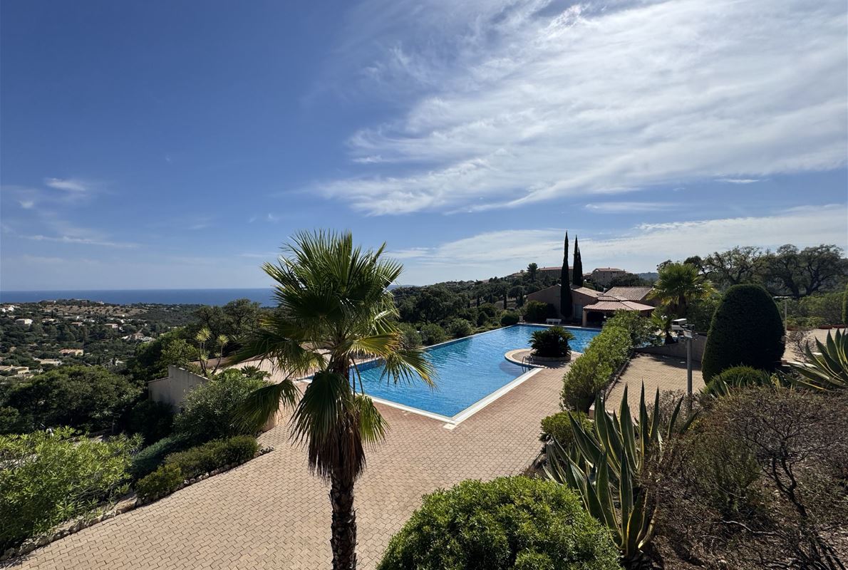 Les Issambres - Breathtaking views of the Gulf of Saint-Tropez In a secure and prestigious estate, boasting two superb swimming pools, a tennis court, a pétanque court, a multi-sports court, a children's playground, and more... Discover this charming 2-room apartment of 43.55m² (34.68m² living space) offering exceptional views of the Mediterranean Sea and the surrounding hills. The apartment comprises an enclosed loggia, a bright living room with a fitted kitchen, a shower room, a separate WC, a bedroom, and an office space or additional sleeping area. The outdoor space includes a beautiful 29m² south-facing terrace, allowing you to fully enjoy the unique panoramic views of the Gulf of Saint-Tropez.