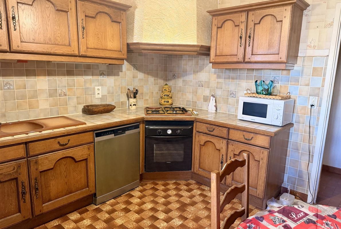 Located just a few minutes from the village center and its shops. On the ground floor, you will find: - A welcoming porch and an entrance hall with a separate wc. - A bright living room featuring an insert fireplace, providing direct access to two terraces, one of which is partially covered, perfect for enjoying sunny days. - A fitted kitchen with a practical pantry for optimal storage. - Three spacious bedrooms with built-in wardrobes, one of which also opens onto the terrace. - A shower room . The basement, with over 90 m², includes: - A garage for your vehicle. - A large workshop space for your creative or DIY projects. - A boiler room. - A cellar for storage.
