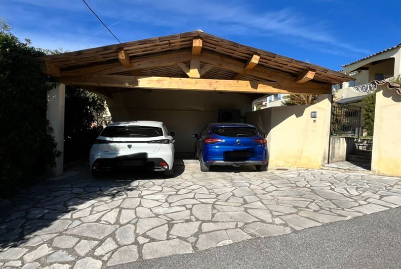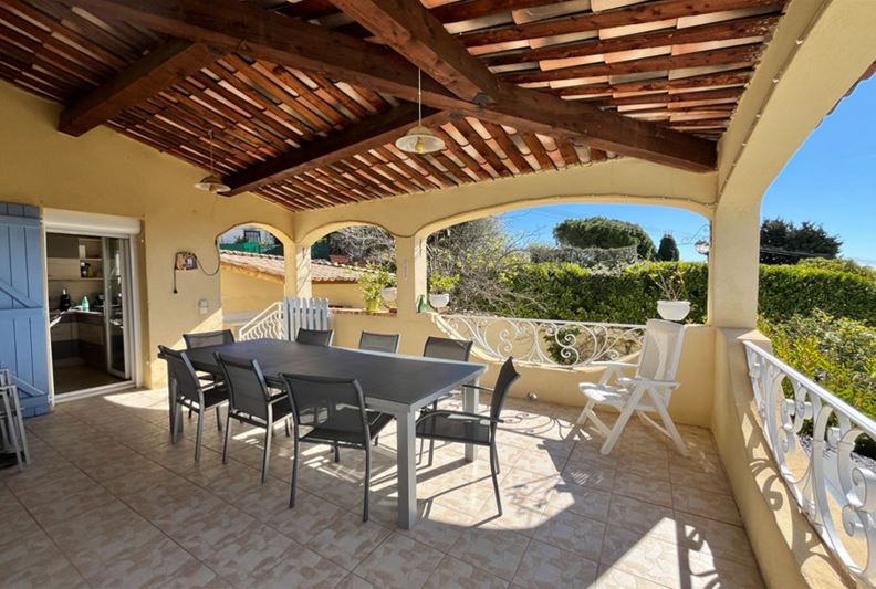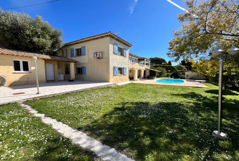 VENCE, close to the town center, in an elevated position with an unobstructed view extending to the sea. The villa is laid out as follows: On the main level, entrance, living room with fireplace, separate fitted kitchen, hallway with independent toilet and hand basin, two bedrooms with built-in wardrobes, a shower room, and a dressing room. A 21 m² terrace with a lovely clear view of the sea, plus a summer kitchen. On the lower level, two bedrooms with built-in wardrobes, a bathroom, a toilet, a dressing room, a TV lounge, and a laundry room. A cellar, a storage room, a workshop, and a boiler room. Outside, a large swimming pool. An annex with a toilet and storage area. A carport for two vehicles.