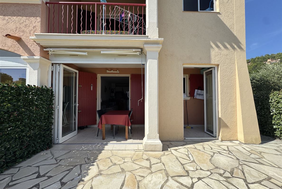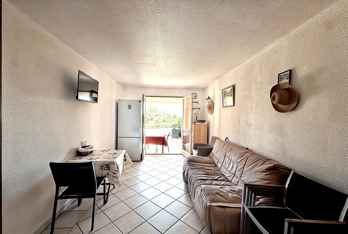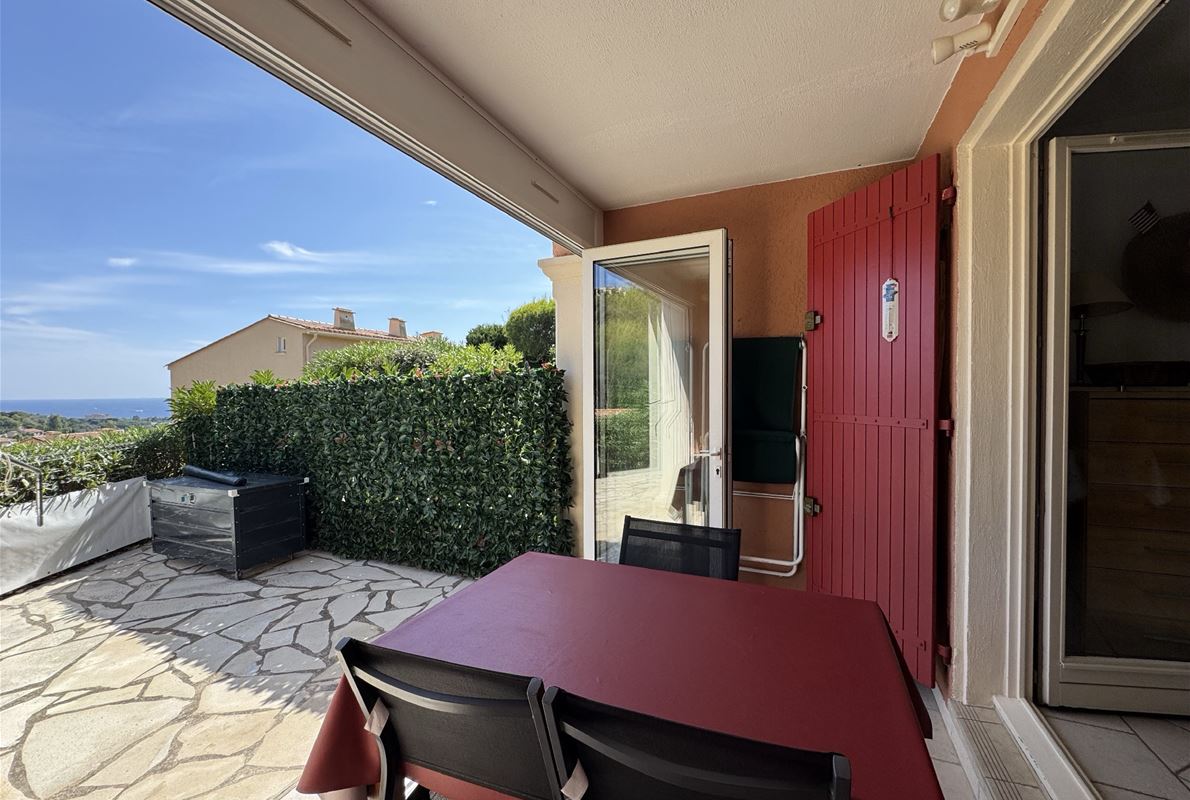 Les Issambres - Breathtaking views of the Gulf of Saint-Tropez In a secure and prestigious estate, boasting two superb swimming pools, a tennis court, a pétanque court, a multi-sports court, a children's playground, and more... Discover this charming 2-room apartment of 43.55m² (34.68m² living space) offering exceptional views of the Mediterranean Sea and the surrounding hills. The apartment comprises an enclosed loggia, a bright living room with a fitted kitchen, a shower room, a separate WC, a bedroom, and an office space or additional sleeping area. The outdoor space includes a beautiful 29m² south-facing terrace, allowing you to fully enjoy the unique panoramic views of the Gulf of Saint-Tropez.