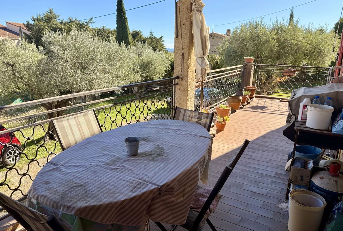 Located just a few minutes from the village center and its shops. On the ground floor, you will find: - A welcoming porch and an entrance hall with a separate wc. - A bright living room featuring an insert fireplace, providing direct access to two terraces, one of which is partially covered, perfect for enjoying sunny days. - A fitted kitchen with a practical pantry for optimal storage. - Three spacious bedrooms with built-in wardrobes, one of which also opens onto the terrace. - A shower room . The basement, with over 90 m², includes: - A garage for your vehicle. - A large workshop space for your creative or DIY projects. - A boiler room. - A cellar for storage.