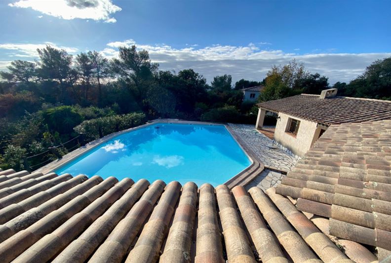 To the west of the village of Tourrettes sur Loup, in absolute tranquility, set in a green haven, a charming Provençal-style home of traditional and high-quality construction, mostly on one level, comprising: entrance hall, double living room with fireplace, spacious open-plan fitted kitchen, three bedrooms each with closets and shower room, full bathroom and separate toilet. Upstairs: master bedroom with closets, shower room/toilet, opening onto a rooftop terrace with an unobstructed sea view. Large swimming pool, covered terrace, double garage, parking spaces, all set on a landscaped plot of approximately 3100 m².