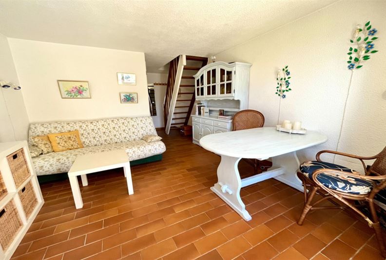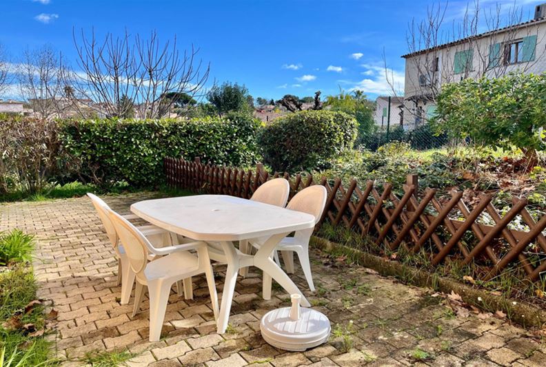 VENCE in a highly sought-after residence with a swimming pool and recreational areas, charming small semi-detached villa of type T3. The accommodation is laid out as follows: living room, kitchenette, separate WC. Upstairs, landing with storage, two bedrooms, bathroom. Spacious corner terrace. One outdoor parking space.
